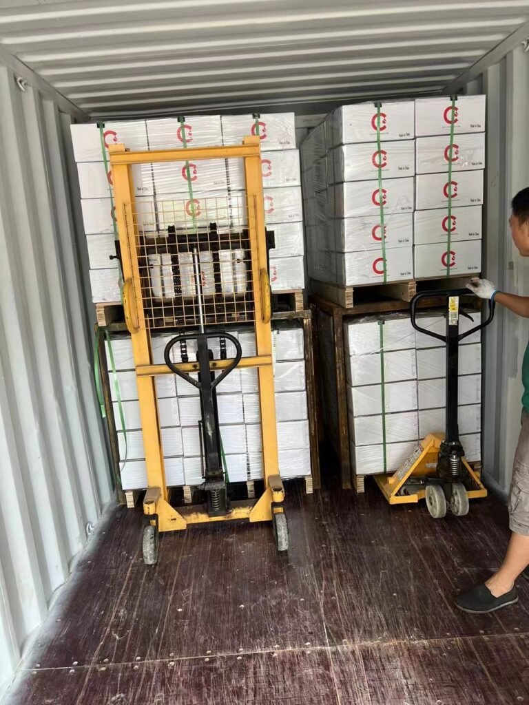 Because customer is a retailer of construction materials in their country, the package of the cartons should be very strong but we need to load as many cartons as we can to save the freight cost. So we have tried different materials of cartons and also customize the strong pallets with stronger steel frame to load 750 cartons per container. Please check the photo and video below: