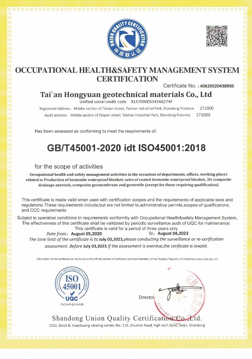 Taian Hongyuan is a leading manufacturer of high-quality geosynthetic clay liners, bentonite waterproofing liners, and bentonite waterstop products. Our customizable solutions cater to the specific needs of building companies and contractors, with a focus on affordability and quality. We pride ourselves on our attention to detail, ensuring that our products meet the highest standards of packaging and quality control. With clients in several countries worldwide, we strive to provide the best customer service and support. Trust Taian Hongyuan for all your waterproofing needs.